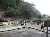 ハイキングの後、足湯に入り、子供たちは気持ちがいいと、とても喜んでいました。