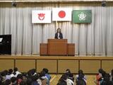 今月の歌の全体合唱の後、3年生の合奏と合唱を行いました。