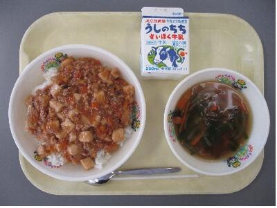 麻婆豆腐は、日本人にもなじみのある中国料理の一つで、中国四川地方の料理です。四川地方はとても寒いので、この地方の人々は辛味のある唐辛子の粉などを使った刺激的な料理を昔から食べてきました。本格的に作る麻婆豆腐はとても辛いので、給食では食べやすく味付けしました。