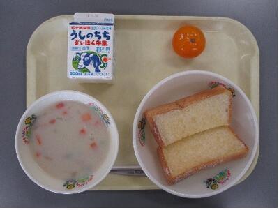 クラムチャウダーは、アメリカで生まれた料理です。「クラム」は貝のことで、「チャウダー」は魚介類やじゃがいも、ベーコン、クリームなどを煮込んだ具だくさんのスープのことです。給食ではあさりを使っていますが、アメリカでははまぐりを使うことが多いようです。