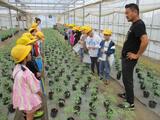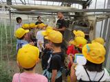 手島農園さんが作っている、男気トマトの秘密について説明を聞き、知りたいことがさらに増えた子供たち。その場で、社長さんにどんどん質問をすることができました。『無潅水(むかんすい)栽培』の方法を知った際には、「すご~い!」という感嘆の声が挙がりました。